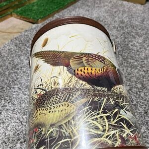 Vintage Pheasant Ice Bucket With Lid - Faux Leather wildlife hunting bar Note!