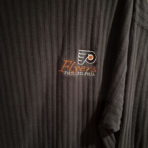 The Vintage Philadelphia Flyers Cadre Athletic Turtleneck is a men's size large black shirt featuring the iconic team logo of the Philadelphia Flyers from the National Hockey League. This officially licensed shirt is perfect for fans of the team looking for a stylish and comfortable way to show their support. Made by Cadre Athletic, this shirt is a must-have for any hockey enthusiast wanting to add a retro touch to their fan apparel collection.
