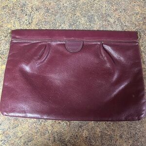 This darling leather clutch features soft pleat details, pull tabs on each side, and hinges at corners to fabulously store your necessities!