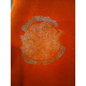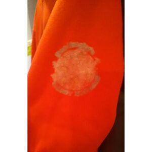 * well loved but does not have any holes. This is missing the drawstring in the hood and the logo in the sleeve is faded.