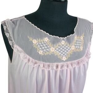 Vintage Philmaid long pastel pink mightgown embroidered ruffle lace