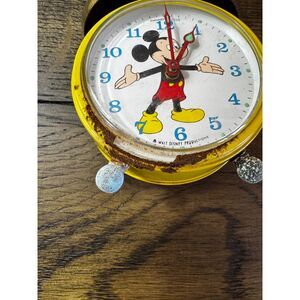 This is a sweet vintage Mickey Mouse clock with a bell alarm at the top; it is a Phinney Walker clock - it is being sold as non working - maybe someone with clock experience can fix it; it has some signs of rust/wear (see pics) on the front; this would be a great display piece - in a collection of vintage Disney items. Measures 2 3/8" across.