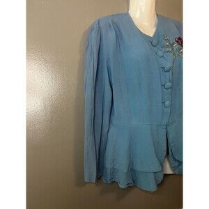Vintage Phoenix Sportswear Jacket Womens Medium Large Light Blue Peplum Sequin