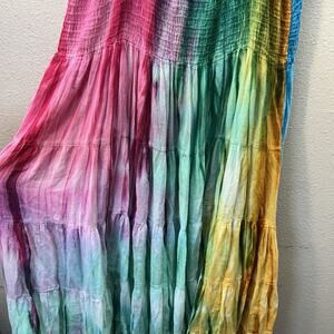 Vintage Phool Maxi Dress Size S Tye Die Smocked Beach Festival Y2k Tiered Summer indie festival sundress boho bohemian rainbow