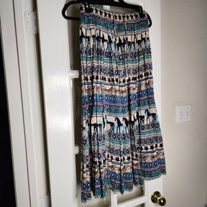 Vintage Phool western horse bird print boho crinkle lightweight midi skirt.