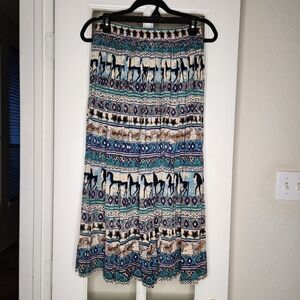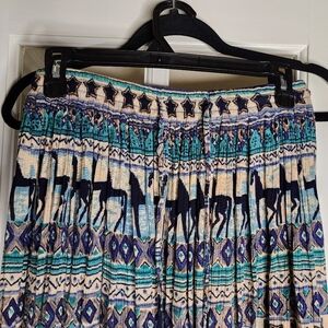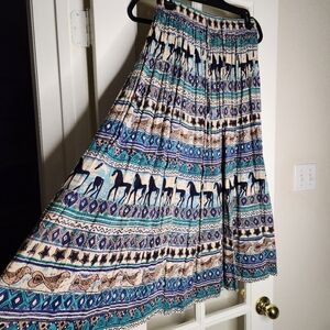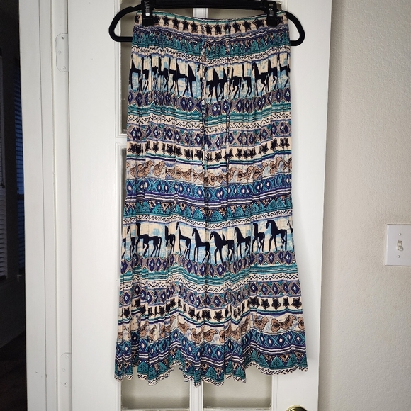 Vintage Phool western horse bird print boho crinkle lightweight midi skirt.