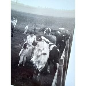 Vintage Photograph Woman & Little Girl Petting A Cow Farm Life