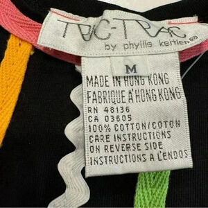 This very unique vintage top with zig zag multi color ribbon trim still has the original tags on it. Perfect condition. See photos for measurements