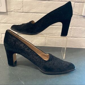 Vintage Phyllis Poland sz 8.5 black velvet pointy toe pumps