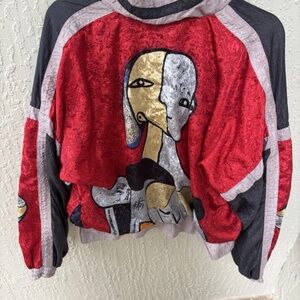 Vintage Picasso Abstract Print Bomber Jacket 80’s nylon medium
