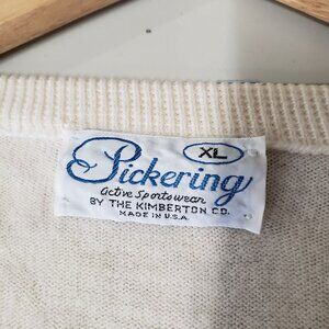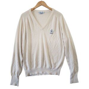 Vintage Pickering XL Cream V Neck Sweater 1970s USA Preppy Ivy League Academia