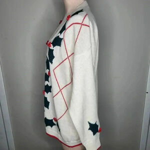Vintage Picket and Smith Womens Holiday Christmas Button Cardigan Size Medium. Holly leaves berries. Good used condition, a few small spots on Sleeve, see photos for details.