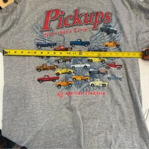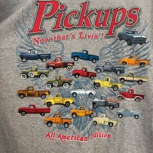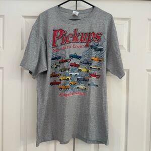 Vintage Pickups Gray Graphic Short Sleeve T Shirt Old Trucks Size XL “Now that’s Livin’!” American Tradition
