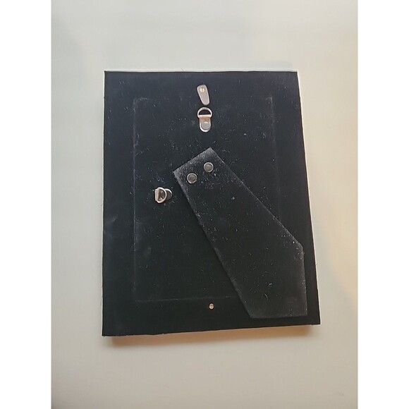 Vintage 1970s Unique photo frame made of wood with a resin look finish. The frame is a rectangle shape, measuring 9x7 inches, suitable for a 4x6 inch photo. It has a lacquered finish and can hold one photo. The frame is designed with a striking look, standing 9 inches tall and 7 inches wide.