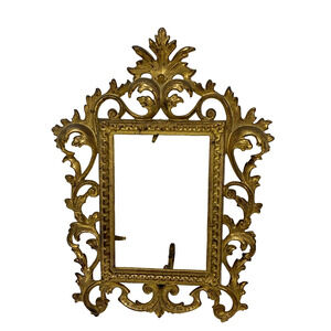 Vintage Picture Frame Cast Metal Ornate Gold Rectangle Portrait Victorian FLAW