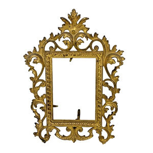 This beautiful vintage photo frame is perfect for displaying your most special memories. It is made of cast metal and has intricate scroll flourishes that are textured and dimensional in design. This is a Victorian or perhaps Edwardian era frame that is free-standing, portrait orientation and is numbered 2234 on the back. Very elegant look with a rich patinated goldtone finish. The easel foot on the back works great but one of the screwback clips is missing and there is no glass cover. Please study the pictures carefully as they are part of the description. This frame is in good vintage condition overall with a couple of minor flaws that could be repaired/replaced - no significant damage or flaws that would prohibit use - add a touch of vintage luxury to your home today!