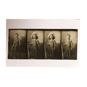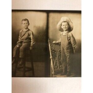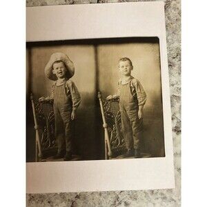 Vintage Picture Strip Little Boy Named David Cramer Overalls Straw Hat Glasses