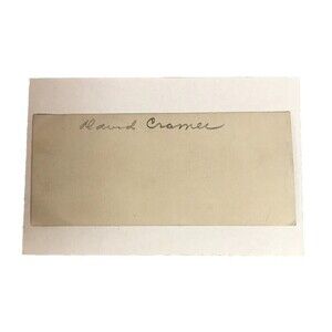 This vintage photograph captures a charming moment of a little boy named David Cramer wearing overalls, a straw hat, and glasses. The sepia image measures 2.25 X 5 inches and is printed on paper. It is an original, one-of-a-kind piece that was produced in the early photo booth format.