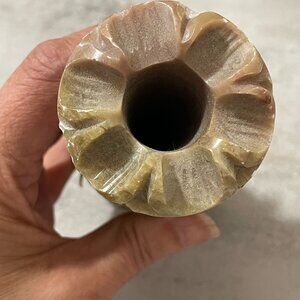 Vintage Pier 1 Carved Green Pink Floral Soapstone Columnar Vases Set of Two 6"