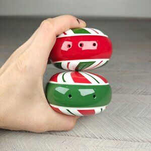 Spice up your holiday meals with these jolly shakers that look like they just rolled out of a candy factory. Perfect for a festive table setting, these ceramic delights add a seasonal pop of color to your spice game. Who knew seasoning could be so sweet?