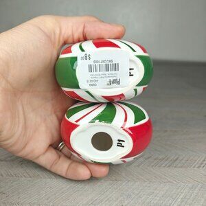 Vintage Pier 1 Holiday Peppermint Swirl Ceramic Salt & Pepper Shaker Set Unused