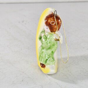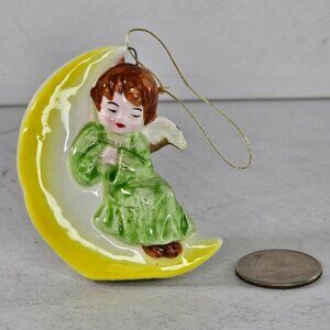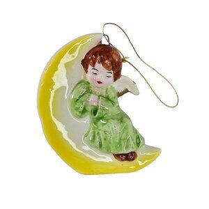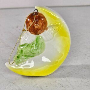 Vintage Pier 1 Japan Ceramic Angel Sleeping On Moon Christmas Ornament *Chip*