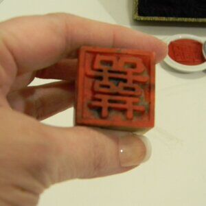 Pier One Chinese Seal Set. Has been used, but the stamp is still in good condition and the ink pad has not dried up. Still has a lot of life left in this set.