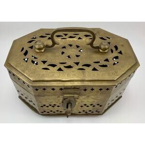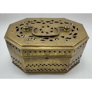 Vintage Pierced Brass Octagon Cricket Box Decor Storage