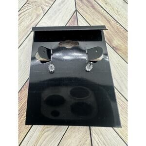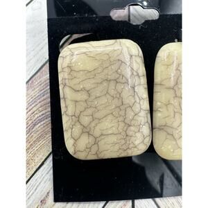 These Vintage Pierced Earrings feature a creamy white color with brown enamel in a square rectangle shape. The studs have a butterfly closure and are perfect for those who appreciate retro and beauty-themed jewelry. Made with enamel, these original vintage earrings are a unique and stylish addition to any jewelry collection.