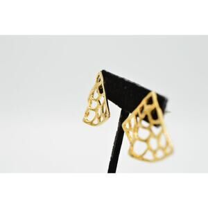 Vintage Pierced Earrings Dangle Gold Tone Metal Triangle NOS 1980s Bin1