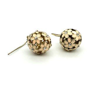 Vintage Pierced Floral Ball Earrings, Dangle Flowers with Enamel and Crystals, Pastel Spring Cottagecore Drop