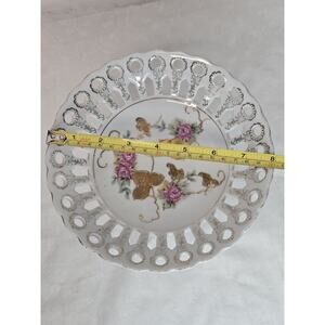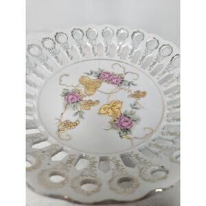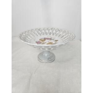 Vintage Pierced Reticulated Porcelain Pedestal Compote Bowl Gold Flowers Japan