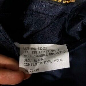 Vintage Pierre Balmain Navy 100% Wool Double Breasted Blazer Suit Jacket Mens 43