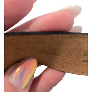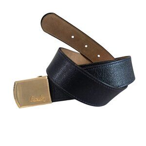 Vintage Pierre Cardin Black Leather Belt With Gold-Tone Engraved Buckle size 32