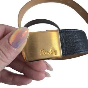 This elegant belt, crafted from genuine black leather, features a striking gold-tone buckle engraved with the Pierre Cardin signature. A timeless accessory, it exudes sophistication and versatility, ideal for elevating both casual and formal outfits. Its enduring craftsmanship ensures durability, making it a collectible piece for those who appreciate classic design.