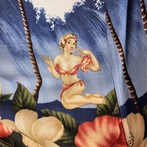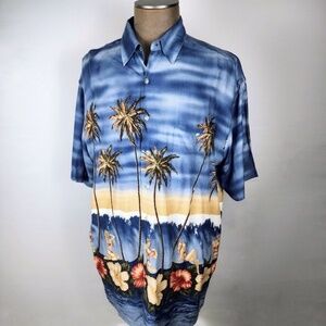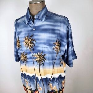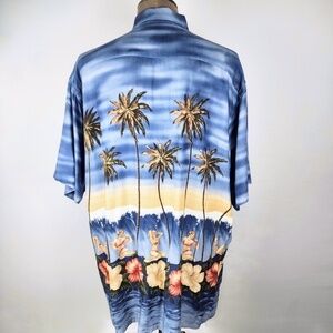 Vintage Pierre Cardin Hawaiian Button Camp Shirt Mens 1XLT Pinup Hula Girls Palm Trees