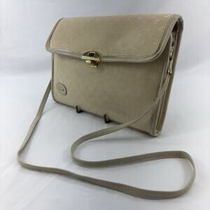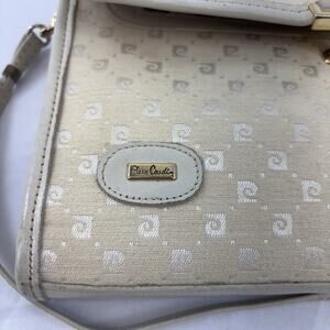 Vintage Pierre Cardin Ivory Embossed Canvas Leather Clutch