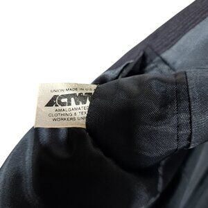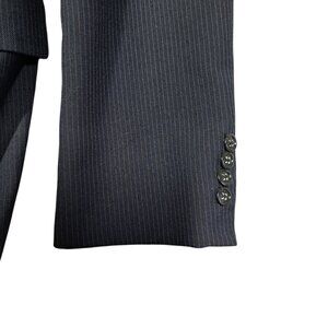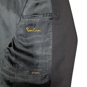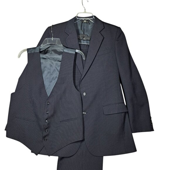 Vintage Pierre Cardin Mens 3-Piece Navy Suit 42R 36x34 Pinstripe Blue Wool 1980s