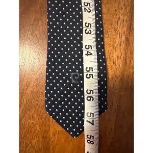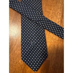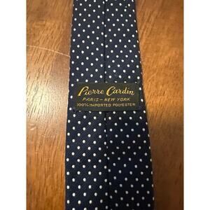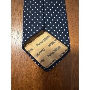 Vintage Pierre Cardin Mens Tie Navy Blue w/ White Polka Dots Logo