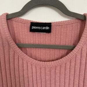 Vintage Pierre Cardin Pink Ribbed Knit Top Medium Scoop Neck Short Sleeve Y2K