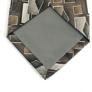 Vintage Pierre Cardin Tie Geometric Abstract Brown Gray Diamond Square Silk