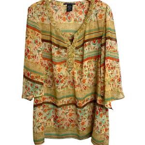 Pierre Cardin Top Women's Size 2x Sequined Retroglam Beaded Neckline Gold Sheer
