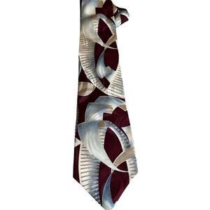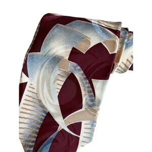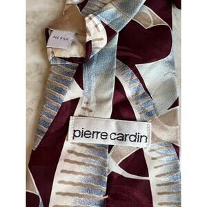 Vintage Pierre Cardin maroon and blue Abstract print silk tie