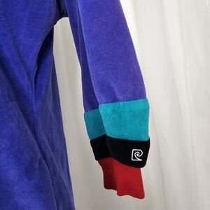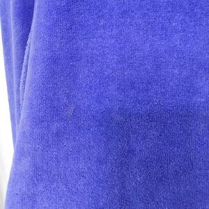 Has a small spot of lightened discoloration on front next to zipper as shown