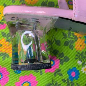 Vintage Pierre Dumas Pink Floral Clear Unique Chunky Heel Mule Sandal Size 7.5