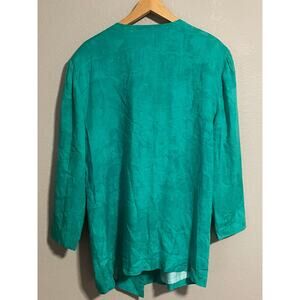 Vintage Pierre Lamonte Womens Jacket Size 16 Green Rayon Studded Open Waterfall