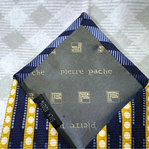 The tie is adorned with the Pierre Pacha logo, ensuring authenticity and brand prestige. It's designed for the discerning gentleman, complementing a variety of outfits from casual to formal. This versatile accessory, tied with Mr. Cooper Clothiers, is an emblem of sartorial elegance and timeless style.