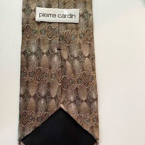 Vintage Pierre Cardin Long Silk Tie Silver, Gray + Gold Design