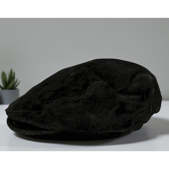 This Vintage Pig Suede Cap Hat is a stylish and versatile accessory perfect for casual occasions. Made in the USA with high-quality suede material, this flat cap features a classic newsboy cabbie style with an adjustable buckle for a comfortable fit. The black color and solid pattern make it a timeless piece that can be worn by both men and women. Its vintage design adds a touch of nostalgia to any outfit, making it a must-have for those who appreciate classic American style.