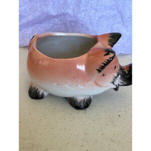 This hand-painted ceramic pig planter figurine adds charm to decor.